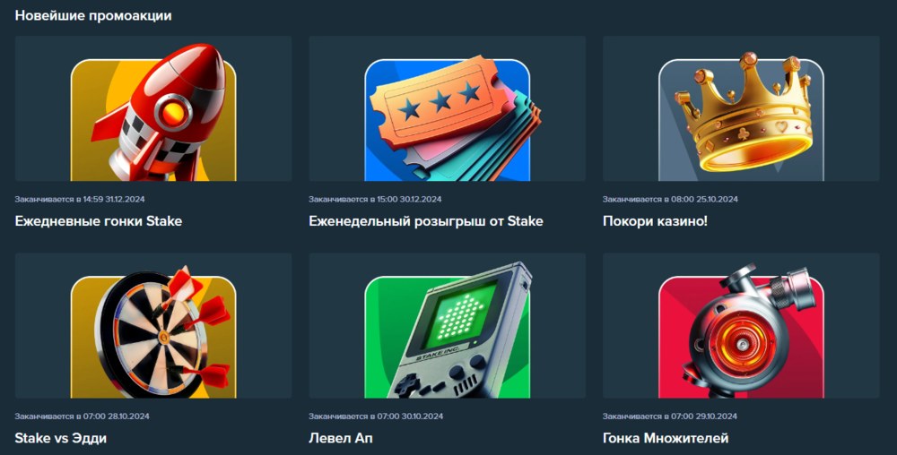 Бонус активен только при наличии регистрации в казино Стейк. Чтобы определиться с подходящим поощрением, достаточно перейти в раздел «Акции» и выбрать лучшее промо.